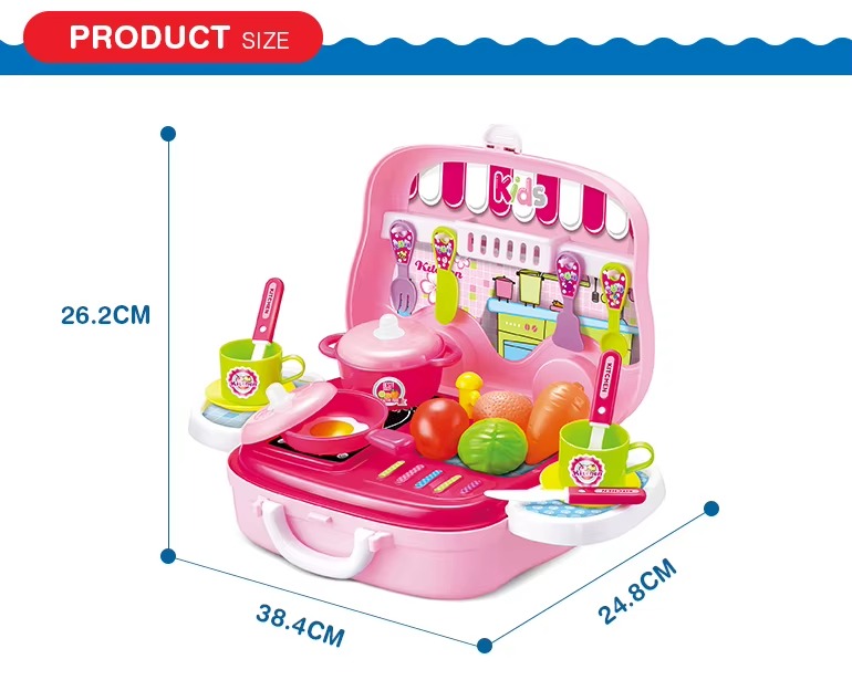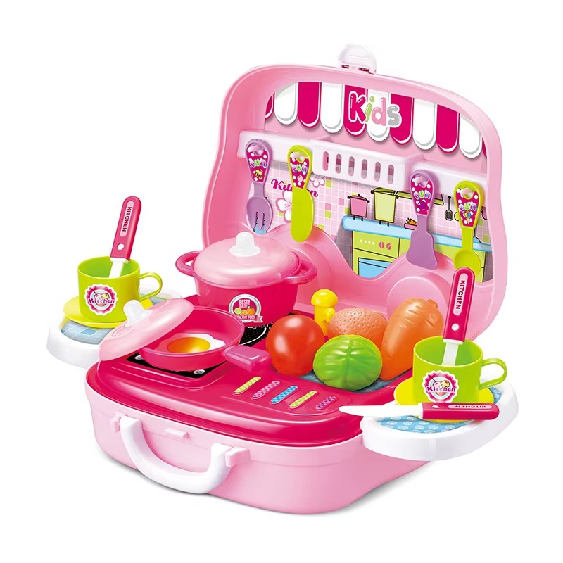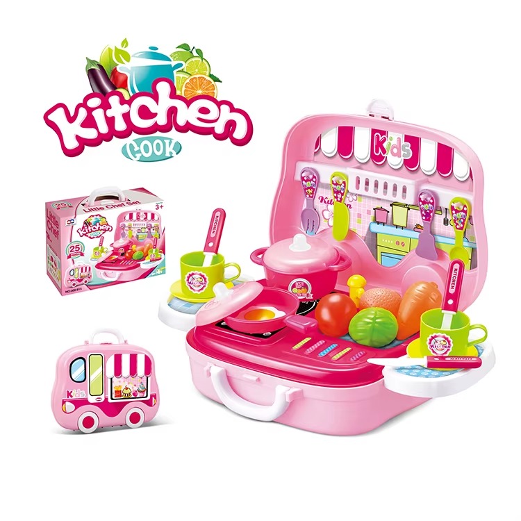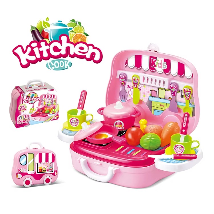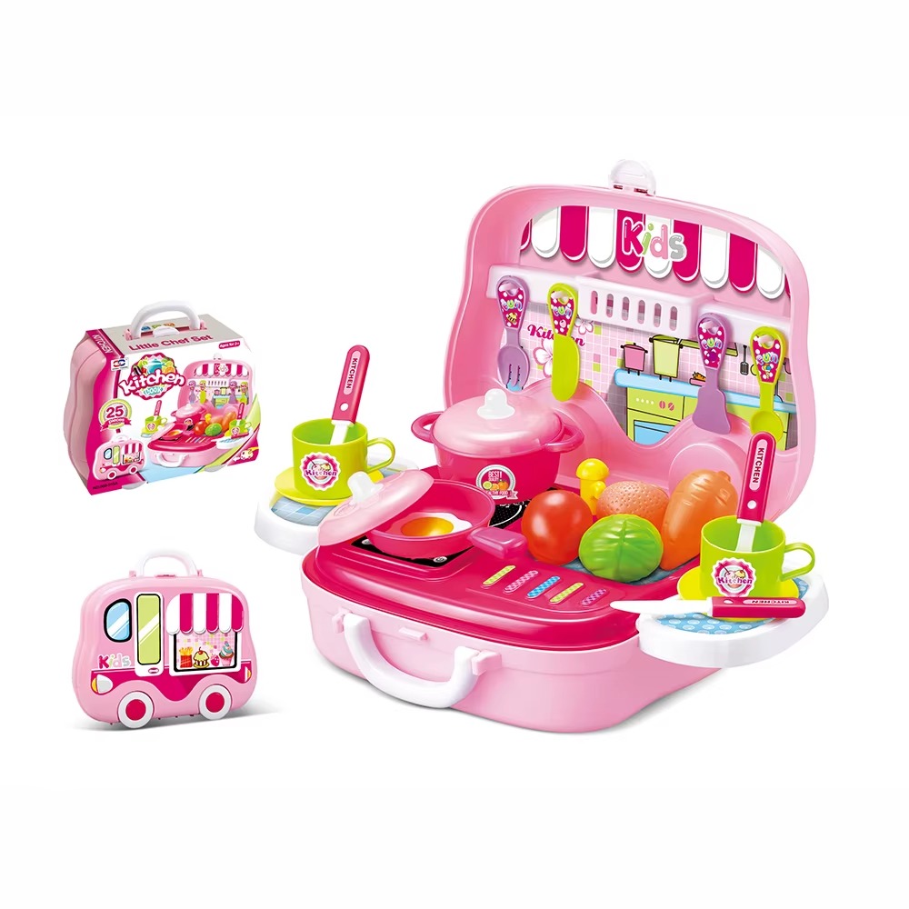 - Număr Piese: 25 de accesorii de bucătărie de jucărie + trusa/mașinuță transformabilă.