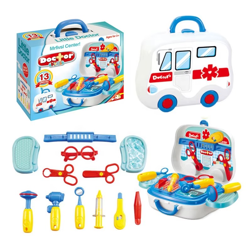 - Număr Piese: 13 instrumente medicale de jucărie + ambulanță/trusă transformabilă.